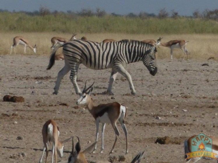 We stopped for a quick breakfast-on-the-go at a picnic site that we found on the map and after that we got traveling again. We did not see a lot of animals on the road towards Okaukuejo except for the usual zebras and blue wildebeest, and the odd elephant every now and then. The landscape is beautiful though and after our many overlanding holidays, we’ve come to appreciate the scenery and the small animals just as much as the impressive and huge animals.